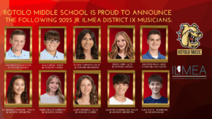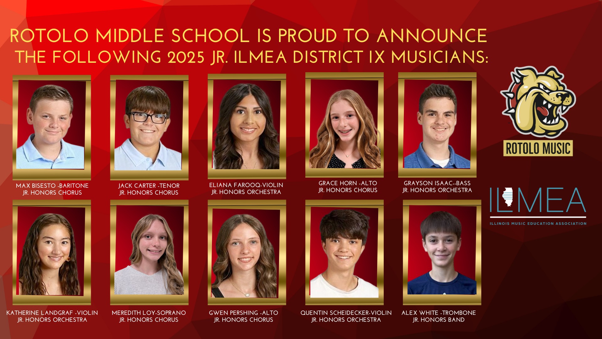 We are so excited to announce our Jr ILMEAS District IX Musicians! Congratulations to our Rotolo Musicians and their amazing accomplishment.
