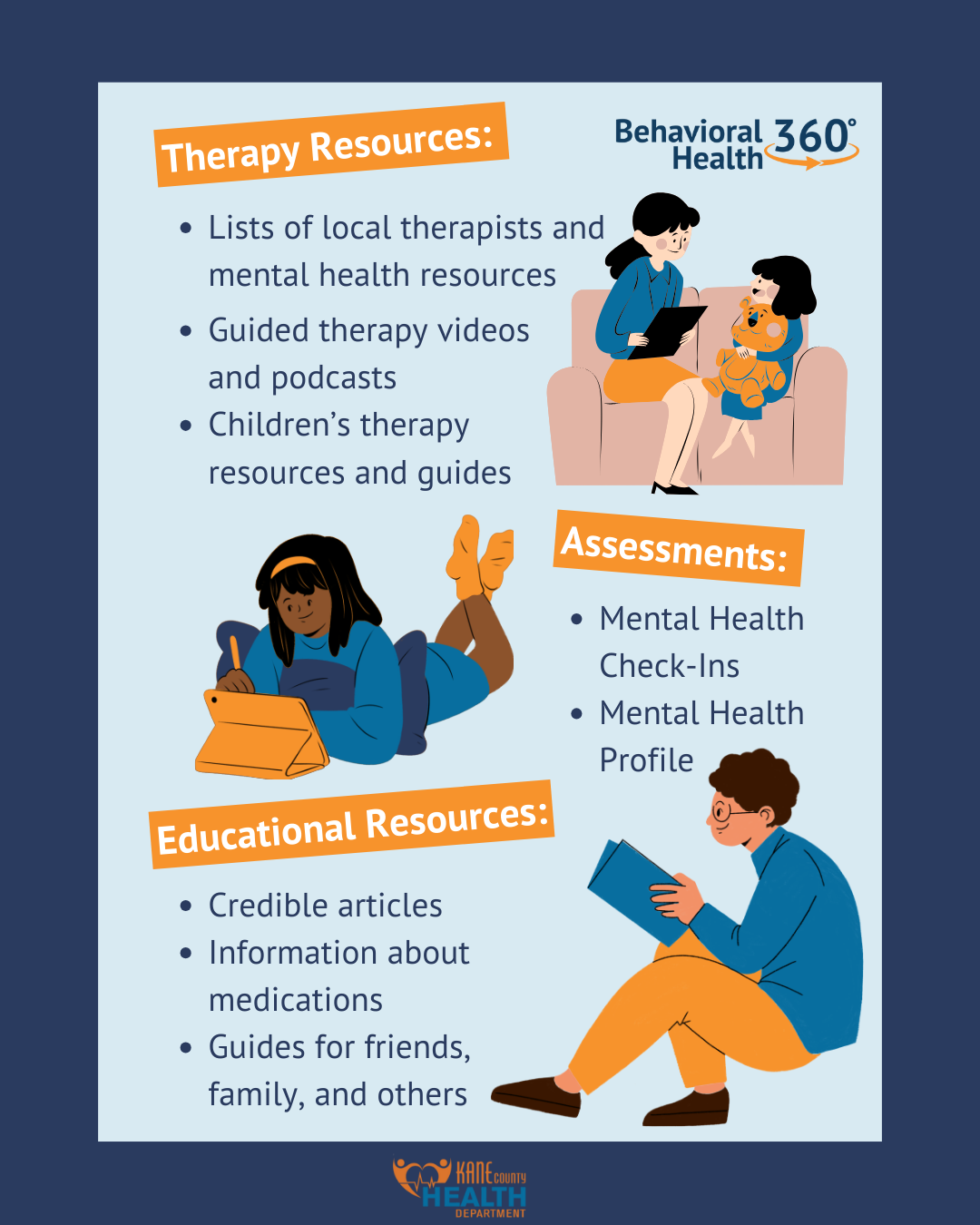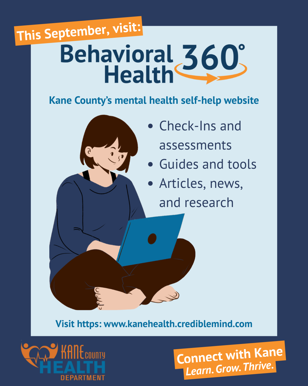 September is Suicide Prevention Month 💙 Kane County Health Department’s Behavioral Health 360 has free resources to support you or someone you love.